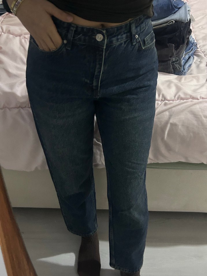 Lacivert Düğmeli Rahat Kesim Midi Kot Pantolon
