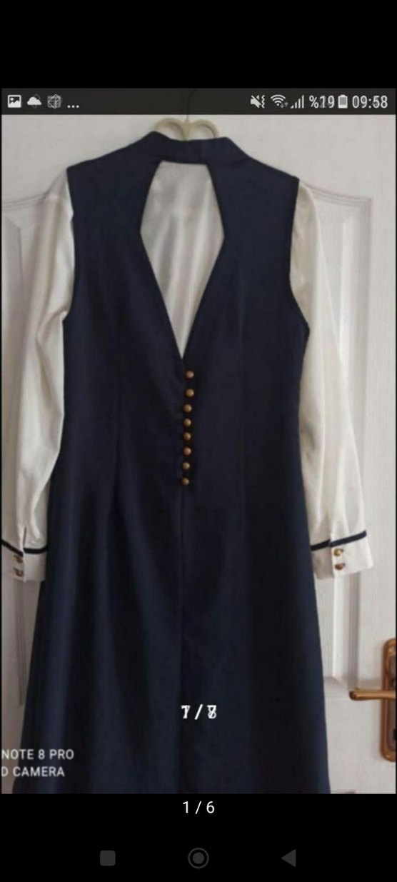 Lacivert renkte, düğmeli ön kısmı ve klasik yaka detayına sahip uzun kadın takımı. Kolsuz ve regular fit olup sentetik kumaştan üretilmiştir. Goth tarzını Paris esintisiyle yansıtır, ofis kullanımı için uygundur. ürün bir defa anca giyildi tam kalıp kumaşı esnek değil