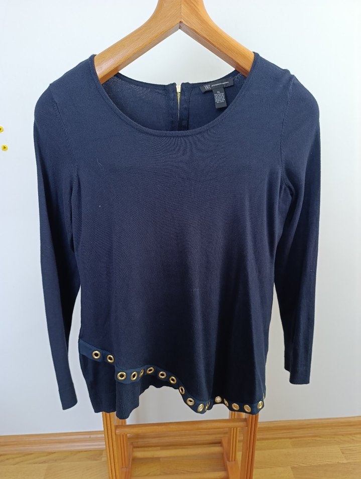 Lacivert Düğmeli Uzun Kollu Kadın Bluz