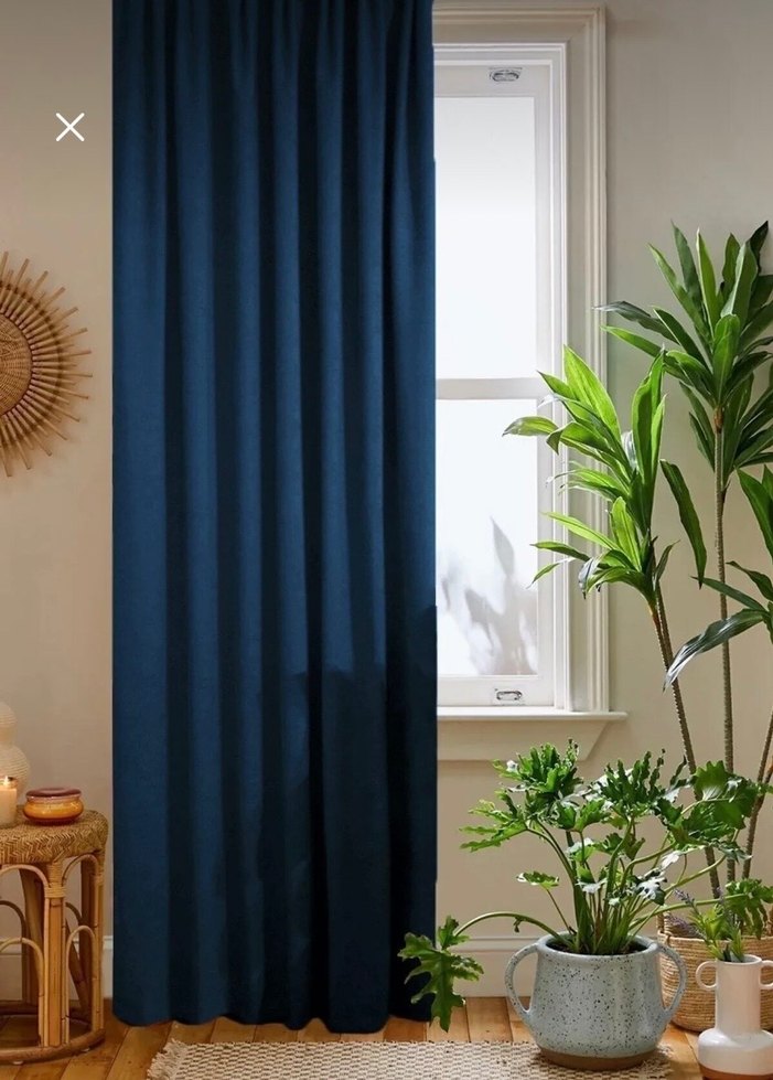 Yumuşak ve pürüzsüz kumaştan yapılmış, lacivert düz fon perde takımıdır.