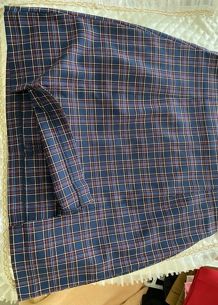 Lacivert ekose desen önden 2yırtmaçlı etek