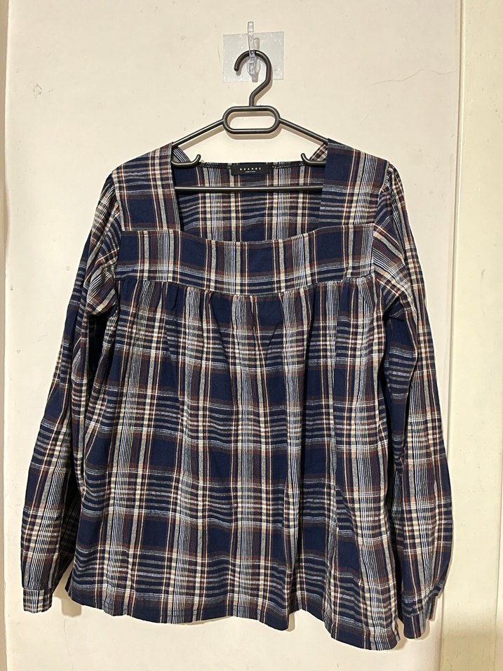 Salaş kesim, uzun kollu pamuklu gömlek. Tekne yaka ve düğmeli, lacivert ekose desenlidir. Günlük ve rahat sokak stili için uygundur.