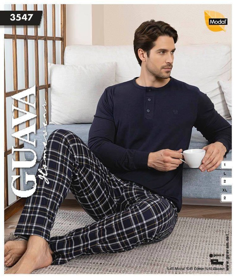 Lacivert Ekoseli Erkek Pijama Takımı, Uzun Kollu