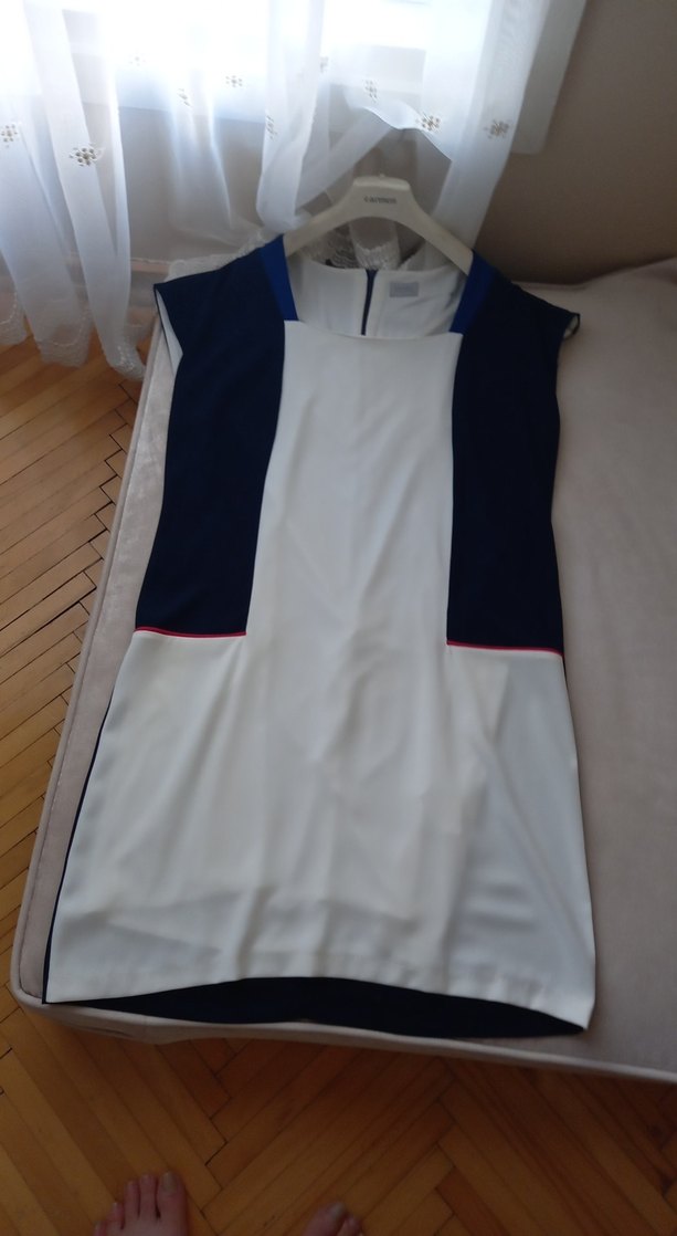 Midi lacivert ve beyaz kuplu , notched lapel yakalı ve kısa kolludur. krep kumaştan, astarli ofis için uygundur. Boy 97 cm göğüs 56 cm