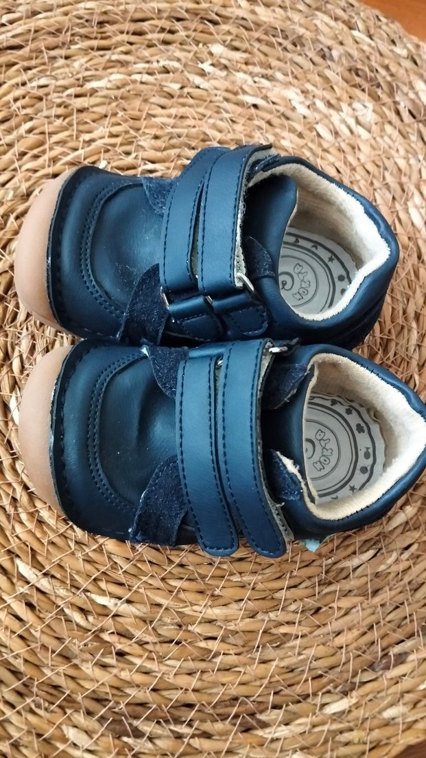 Lacivert renkte, kaymaz tabanlı ve cırt cırtlı erkek bebek ilk adım ayakkabısı. Sokak stiline uygun, sade ve desensiz tasarım.