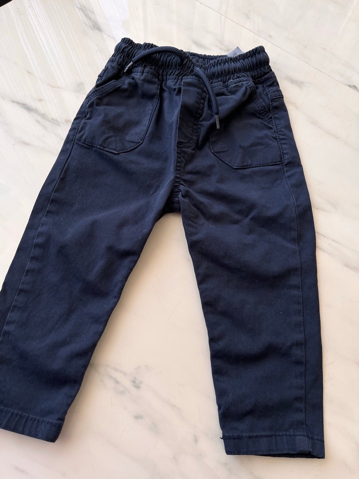 Lacivert renkli, bol kesim erkek çocuk denim pantolon. Lastikli bel ve bağcık detayı ile rahat kullanım sağlar, desensiz sade tasarım sunar.
