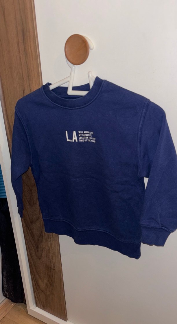 Lacivert renk, uzun kollu, bisiklet yaka erkek çocuk sweatshirtü. Denim kumaştan, rahat kesim ve önünde baskılı desen bulunur. Şık ve rahat stil için uygun.