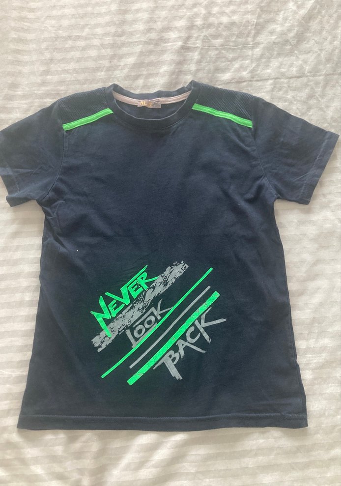 Lacivert , dar kesim erkek çocuk tişörtü, kısa kollu ve bisiklet yaka. Sokak stili baskı ve cırt cırt detaylarıyla rock punk havası taşıyor. ✨