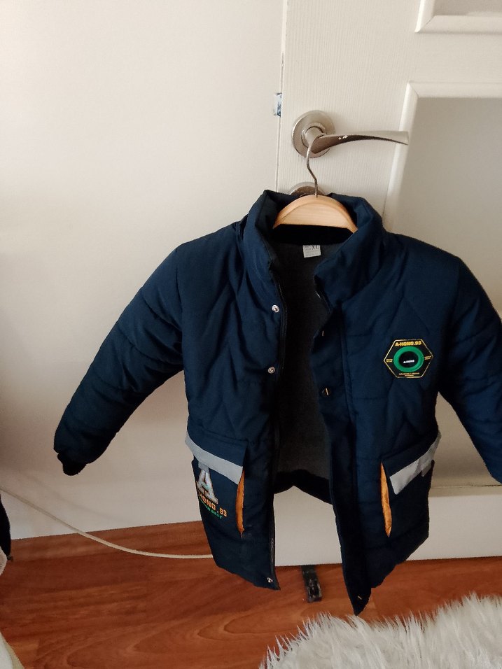 Lacivert renkli, baskılı desenli, düğmeli ve kesimli erkek çocuk montu. Sokak tarzı için yumuşak ve sıcak kumaştan üretilmiştir. 42 beden yazıyoru ama 7.8 yaşa olur ölçüye göre alın sorunsuz marka temsil