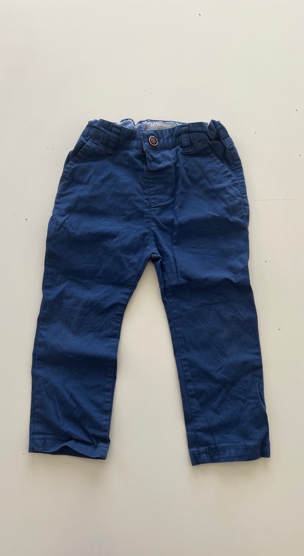 Lacivert kot kumaştan yapılmış, düğmeli ve regular fit erkek çocuk pantolonu. Düz ve desensiz, normcore tarzda. 3-4 yaş