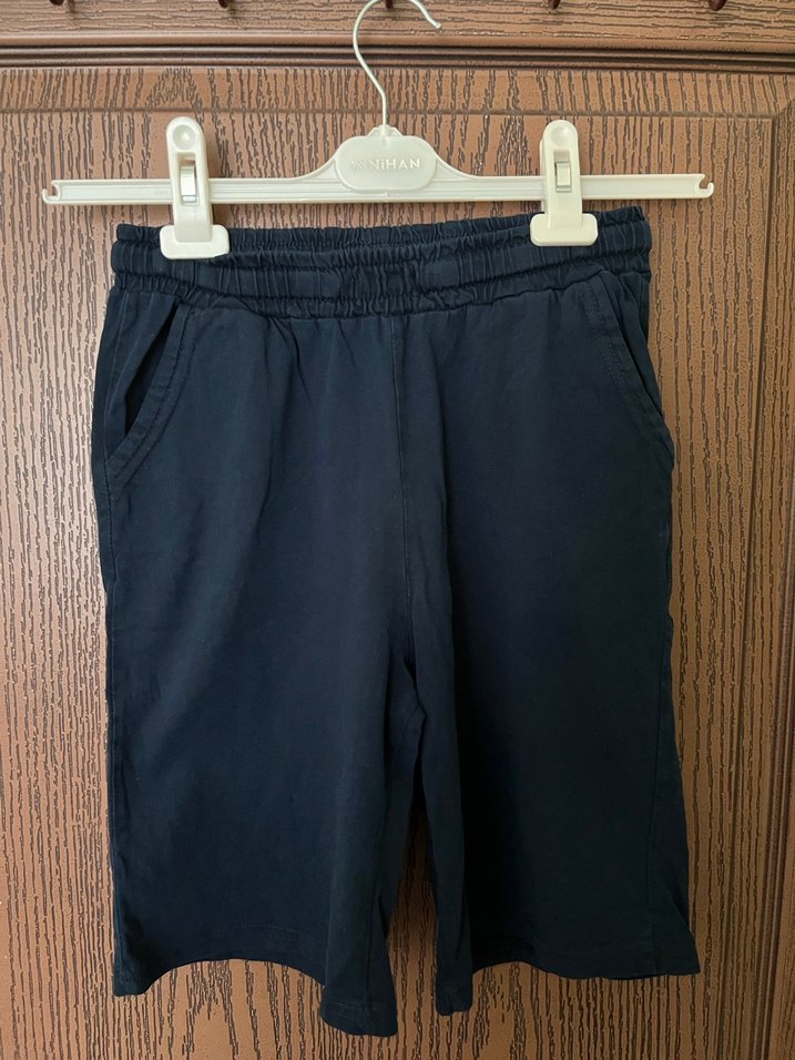 Lacivert, rahat kesim ve yan ceplere sahip erkek çocuk şortu, yumuşak sentetik kumaştan üretilmiştir. Sokak stili için uygundur. En 30cm Boy 43cm 11/12 Yaş 4. görselde görüldüğü gibi çok belli olmayan 2 adet küçük defosu vardır, arkada bel kısmına denk geliyor