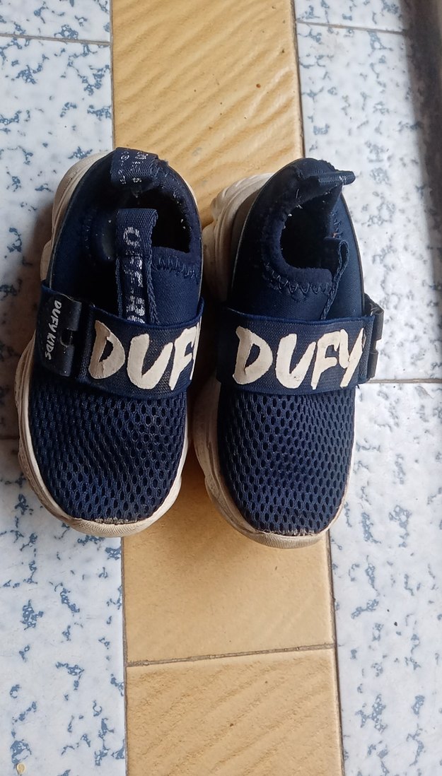 Nefes alabilen kumaş ve kauçuk tabanlı, lacivert erkek çocuk spor ayakkabısı. DUFY baskılı velcro bantlı, rahat kullanım sağlar.