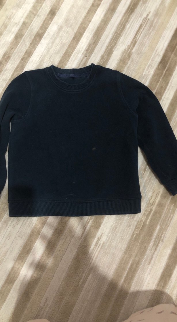 Lacivert renkli, uzun kollu ve yuvarlak yakalı erkek çocuk sweatshirtü. Rahat kesimi ve yumuşak, sıcak kumaşıyla sokak stili için uygun.
