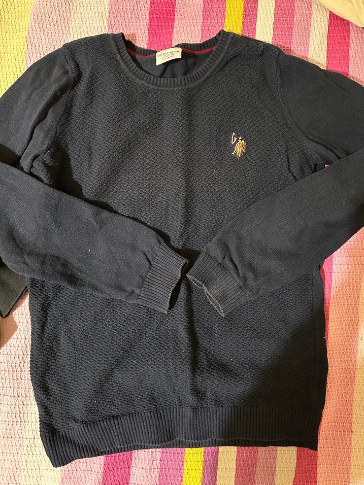 Uzun kollu, yuvarlak yaka, lacivert erkek çocuk triko kazak. İnce örgü yün kumaştan, fit kesim ve küçük logo detaylıdır. Şık ve rahat tarz için uygundur.