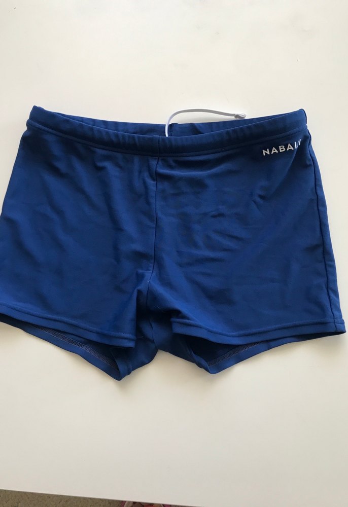 Lacivert erkek çocuk yüzme şortu, düz ve desensiz tasarıma sahip, elastik bel bandıyla rahat kullanım sağlar. 12/13 yaş