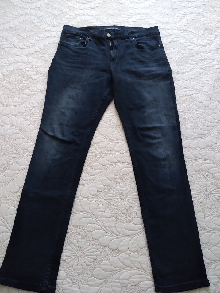 Lacivert renkli, regular fit ve normal boyda erkek denim jean pantolon. Desensiz ve rahat şıklık sunan bu pantolon, günlük kullanıma uygundur. 2 adet pantolon siyah ve lacivert yeniden farkı yok ikiside aynı ölçü. Bel 42 Boy 100 Paça 15 Bir iki kere Giyildi Oda Kısa Süre.