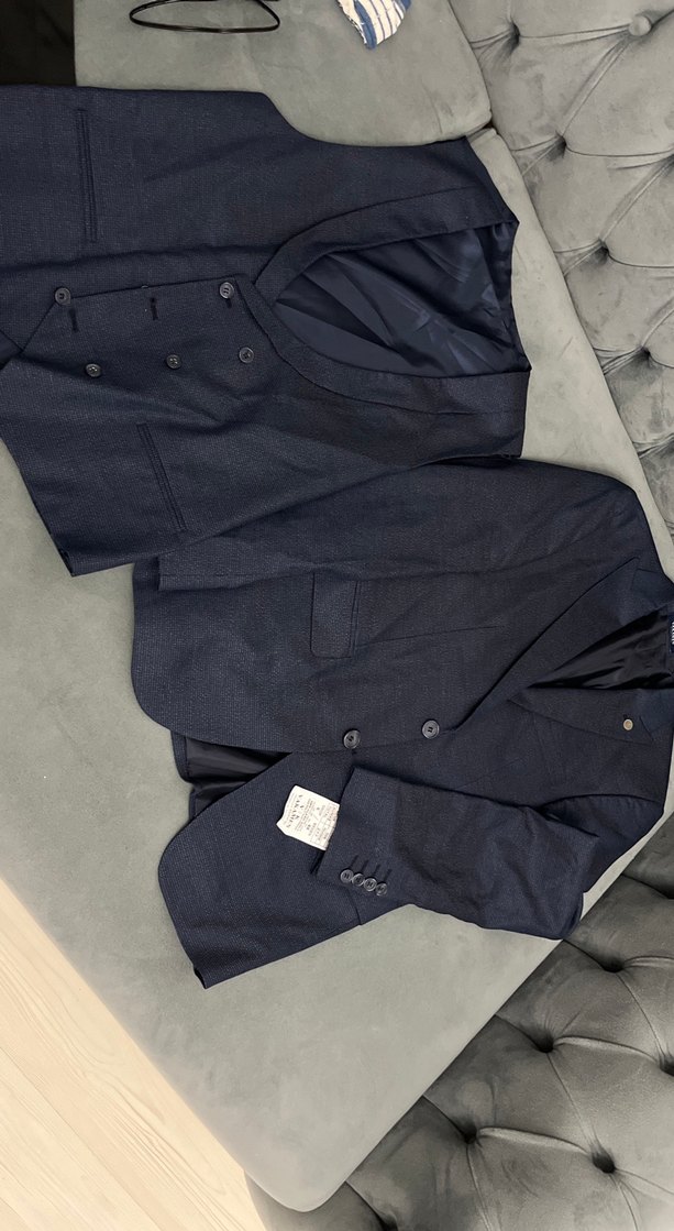 Lacivert renkte, düğmeli, regular fit kesime sahip, uzun kollu ve klasik yaka detaylı erkek takım elbisesi. ️
