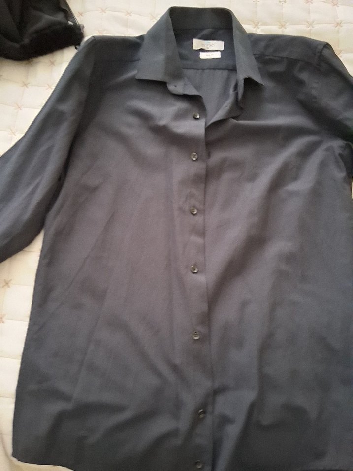 lacıvert i renkli, düğmeli, uzun kollu ve yakalı erkek gömleği. Normal kesim ve sentetik kumaştan, ofis için uygundur.