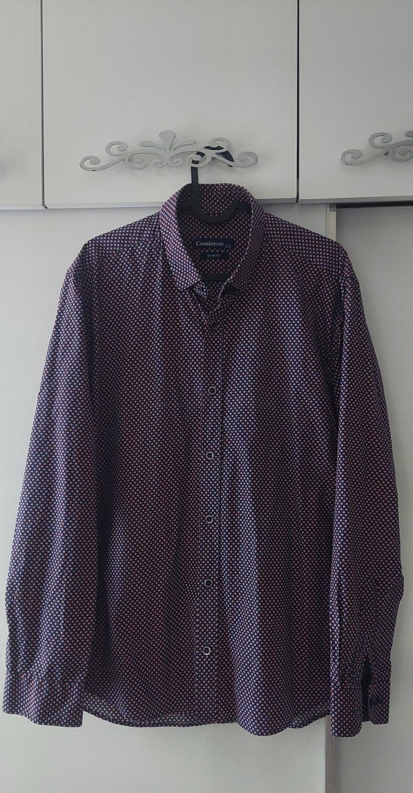 lacivert renkli, kırmızı beyaz desenleri ile şık uzun kollu erkek gömleği. Kombininizin star parçası olmaya hazır. pazarlık payı vardır.