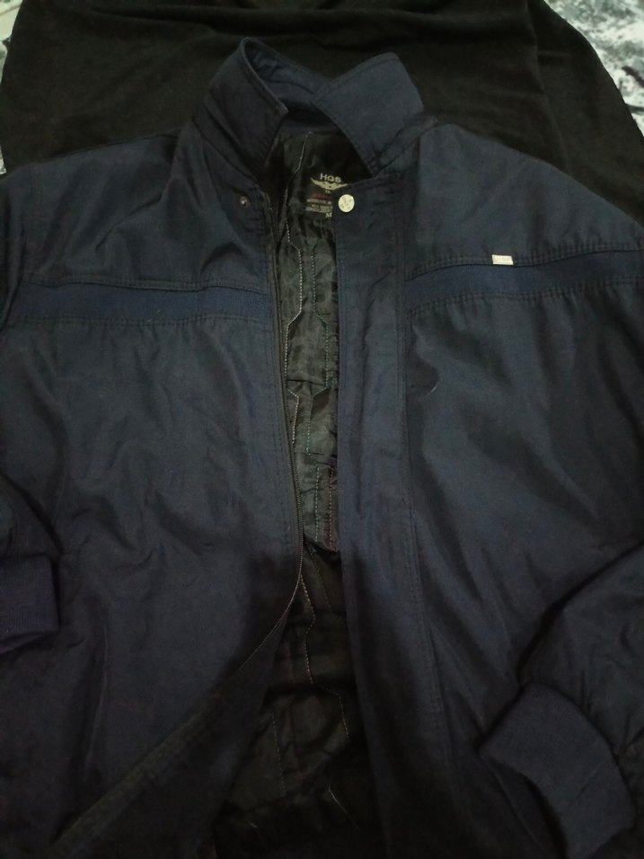 Lacivert renkte, fermuarlı ve notched lapel yakalı erkek ceketi. Sentetik kumaştan, regular fit, uzun kollu ve midi boyda, sokak stiline uygun. Günlük kullanım için ideal.