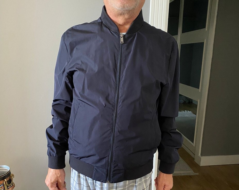 Lacivert renkte, fermuarlı ve uzun kollu erkek ceket. Suni kumaştan üretilmiş, normal ve midi boyda, günlük rahat kullanım için uygundur.