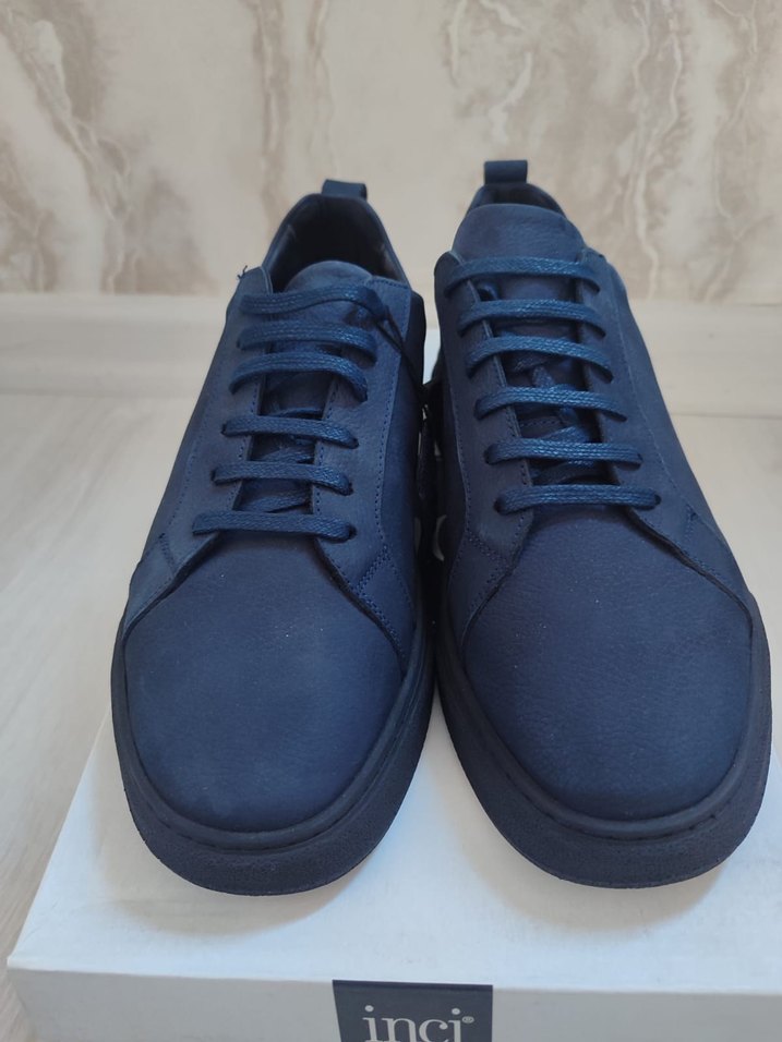 Lacivert renkte, kauçuk tabanlı erkek günlük spor ayakkabısı. Sokak modası ve athleisure tarzı için rahat ve şık bir seçim.