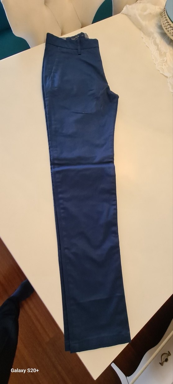 Lacivert renkli erkek denim pantolon, kemerli ve normal boyda, rahat bir kesime sahip. İş ortamına uygun sade tasarım sunar.