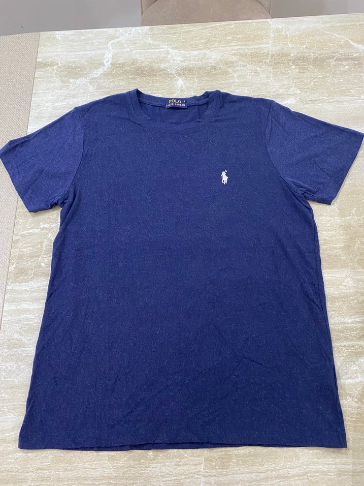 Düz lacivert renkte, kısa kollu ve yuvarlak yakalı, yumuşak ve sıcak dokulu erkek polo tişörtü. Günlük rahat kullanıma uygundur. 1-2 kez giyildi tertemiz