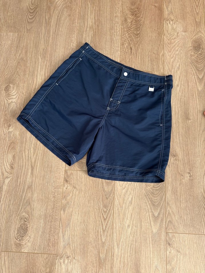 Lacivert renkte, kısa ve vücuda oturan erkek mayo şortu. Minimalist, desensiz tasarımıyla plaj ve sokak stiline uygun, zahmetsiz şıklık sunar.