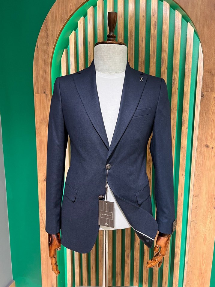 Lacivert renkte, klasik kesim, düğmeli erkek takım elbise ceketi. Uzun kollu ve yakası notch detaylı, iş ortamı için uygun modern klasik tarzda. Sıfır etiketli Ceket 50-52-54-56-58-60 beden mevcuttur