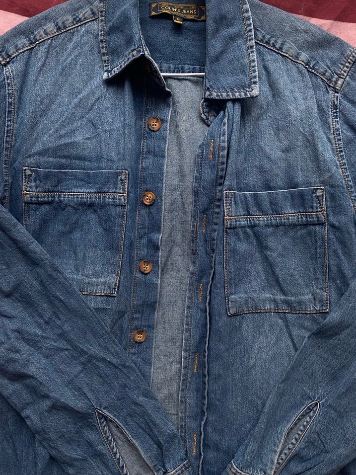 Lacivert kot ceket, düğmeli ve bol kesim. Uzun kollu, yakası açık ve iki ön cepli. Günlük rahat midi boy sokak stili ceket.