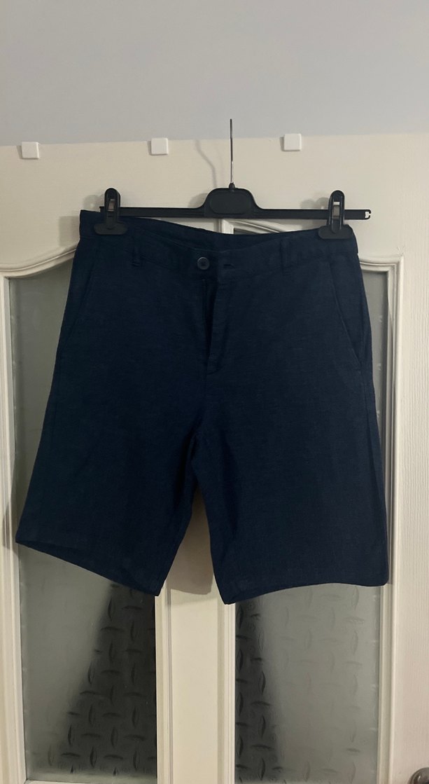 Lacivert kot şort, regular fit kesim ve kemerli. Mini boy, desen içermeyen, günlük rahat sokak stiline uygun.