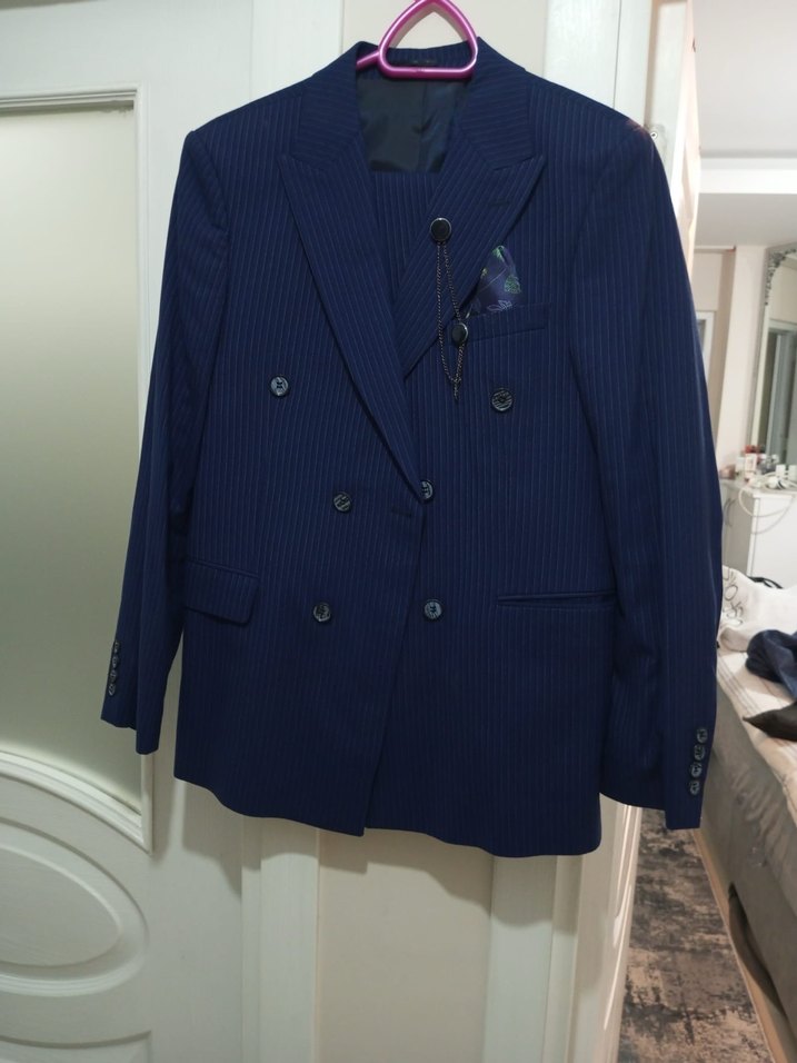 Lacivert erkek takım elbise ceketi, kruvaze ve düğmeli önde, regular fit, uzun kollu ve uzun boylu. Ofis ve sokak stiline uygun, klasik şıklık sunar. ️