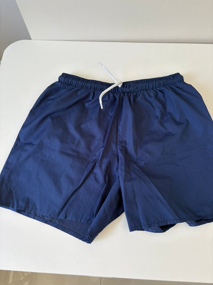 Lacivert erkek mayo şortu, elastik bel ve ayarlanabilir bağcık ile rahat kullanım sağlar. Yüzme ve plaj aktiviteleri için uygundur.
