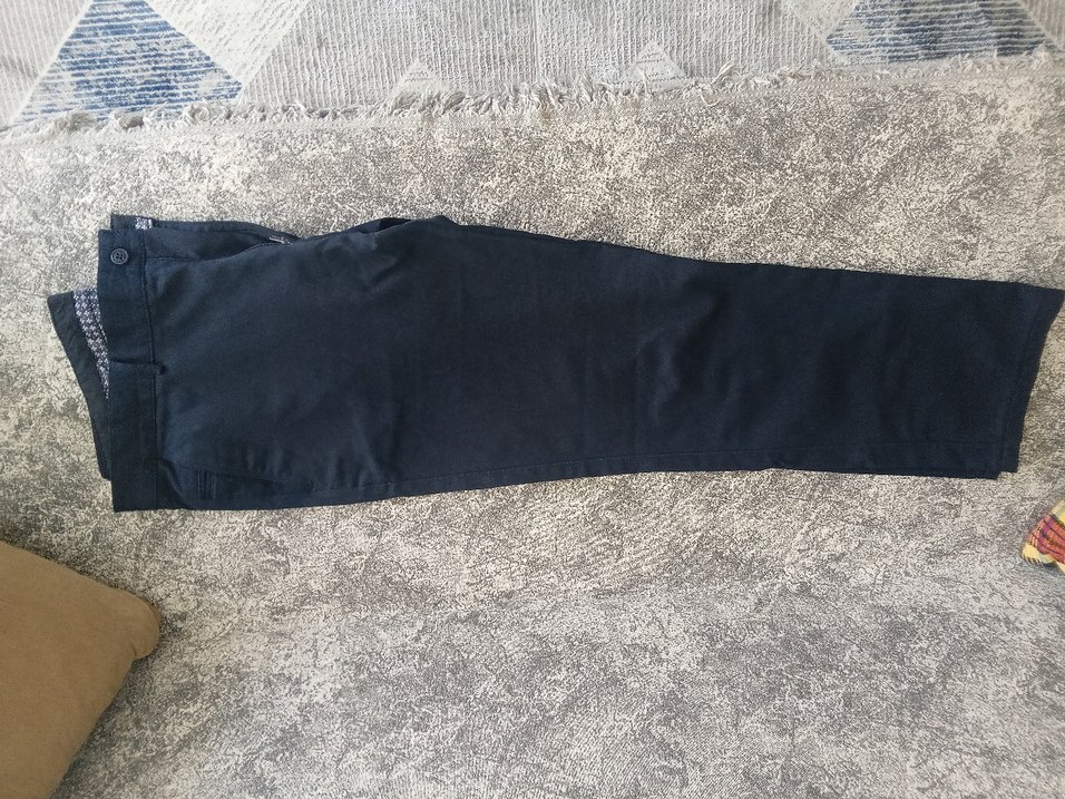 erkekler için normal boy, düz kesim lacivert kumaş pantolon. Sentetik kumaştan, Velcro detaylıdır. Rahat ve sade günlük kullanım için uygundur. 50 beden keten pantolon