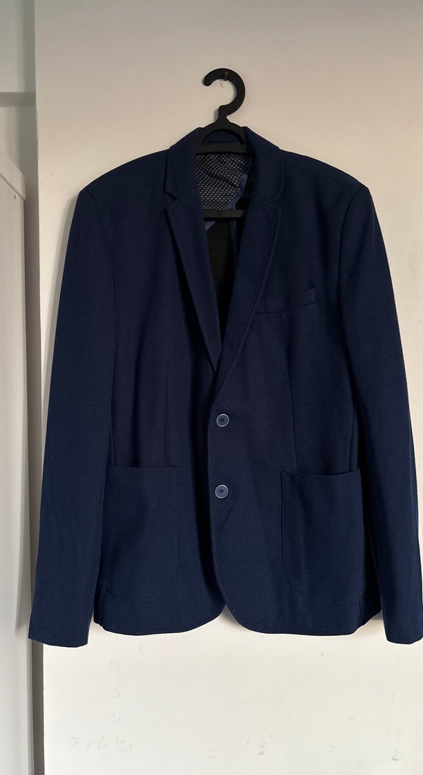 Lacivert renkte, düğmeli, klasik yaka ve normal kesime sahip erkek ofis takımı ceketi. Uzun kollu ve desensiz tasarımıyla şık ve rahat bir görünüm sunar.