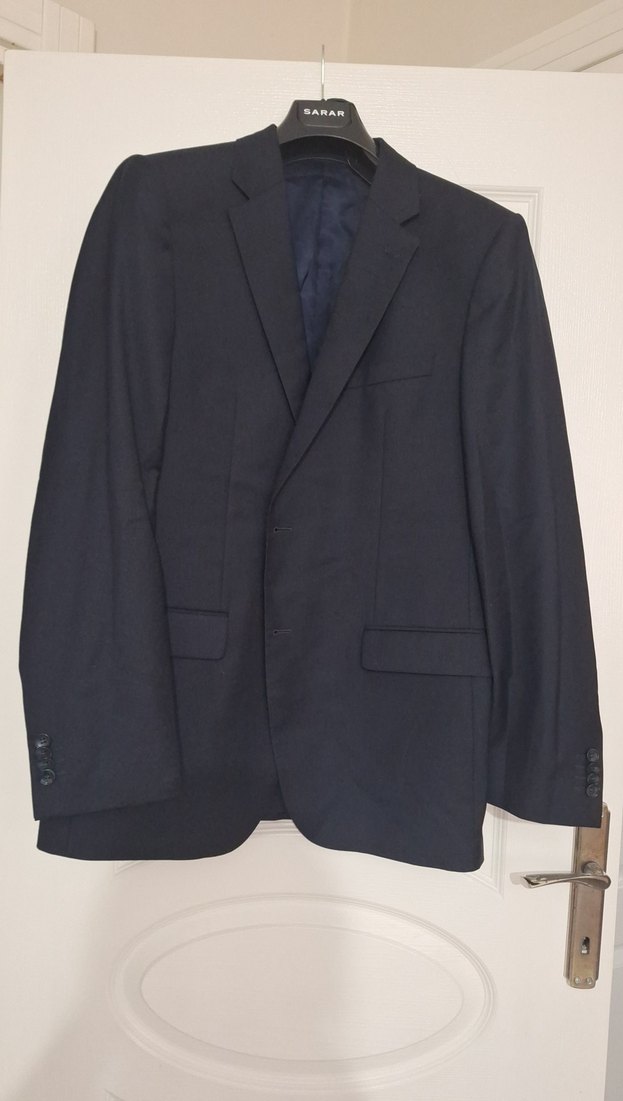 Lacivert renkli, çıtçıtlı, klasik kesim, uzun kollu erkek takım elbise ceketi. Ofis kullanımı için uygundur, desen içermemektedir. ️Sarar marka