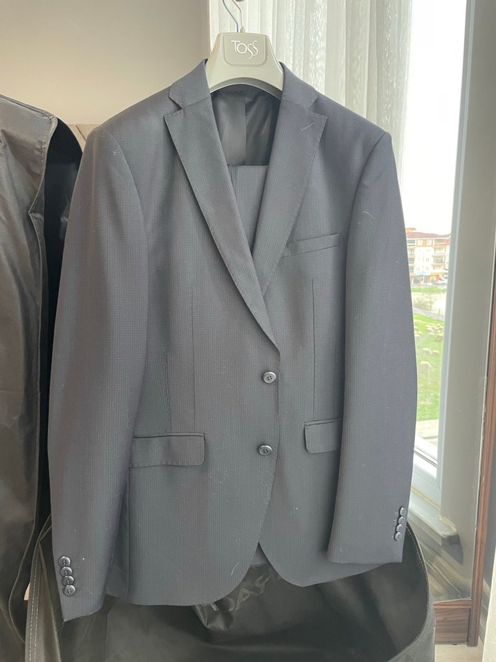 Lacivert renkli, klasik kesim ve düğmeli erkek takım elbise ceketi. Ofis ve iş ortamları için uygun, uzun kollu ve modern klasik tarzda bir parça. ️