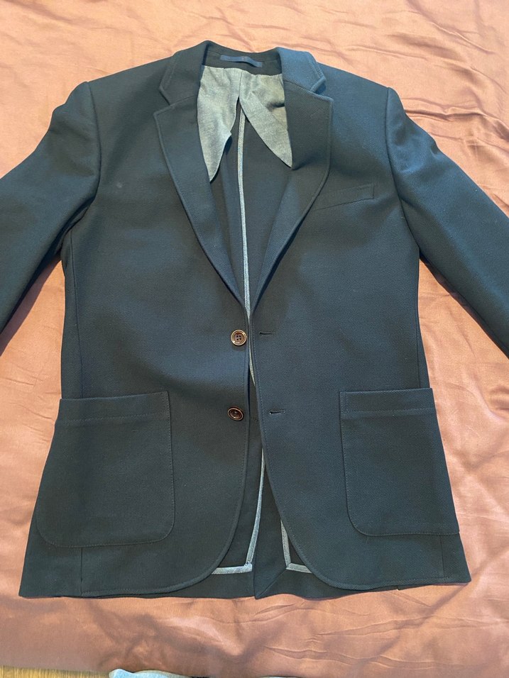Mavi/lacivert renkte, düğmeli ve normal boyda erkek ofis takımıdır. Notch yaka ve uzun kollu, normcore tarzıyla şık ve sade görünür.