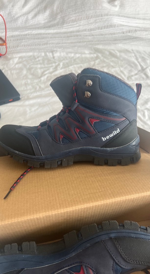 Tokalı, baskılı detaylara sahip lacivert erkek outdoor botları. Sağlam kauçuk tabanlı, casual biker tarzı için uygun.