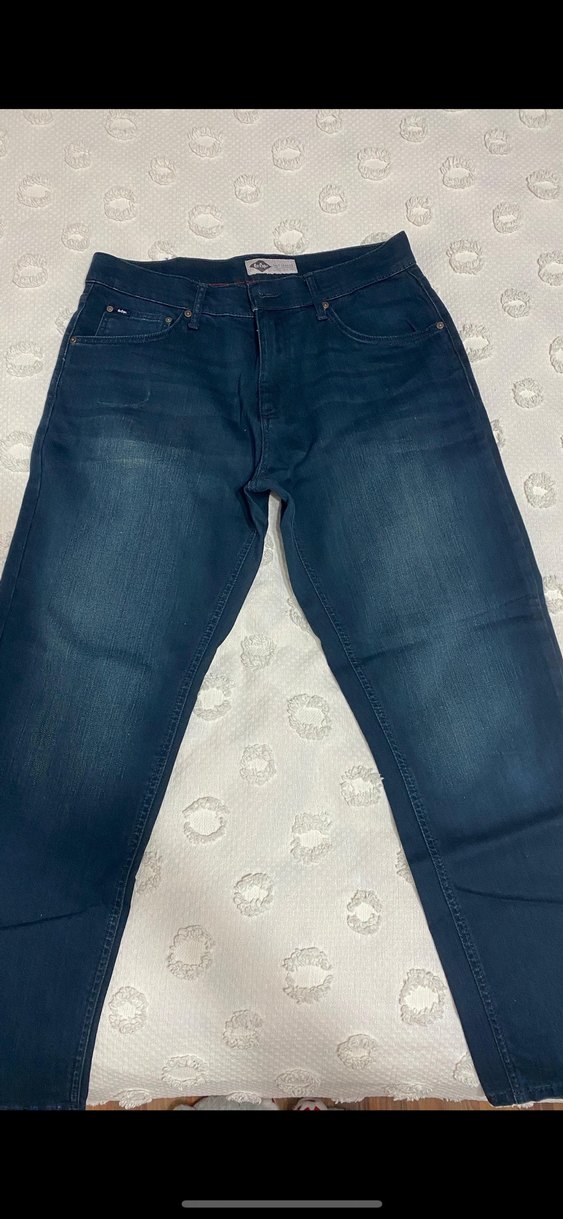 Lacivert renkte, regular fit kesime sahip erkek denim jean. Normal boy ve bağcıklı detaylı, günlük sokak stiline uygun bir model. Neredeyse hiç giyilmedi