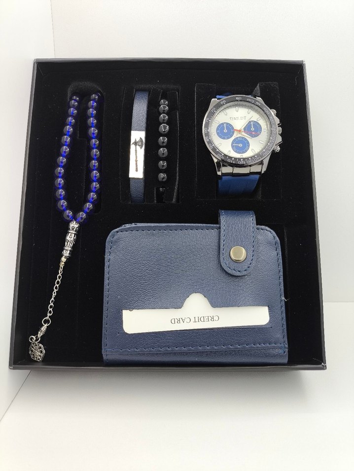 Lacivert Erkek Saat ve Aksesuar Seti - Görsel 1