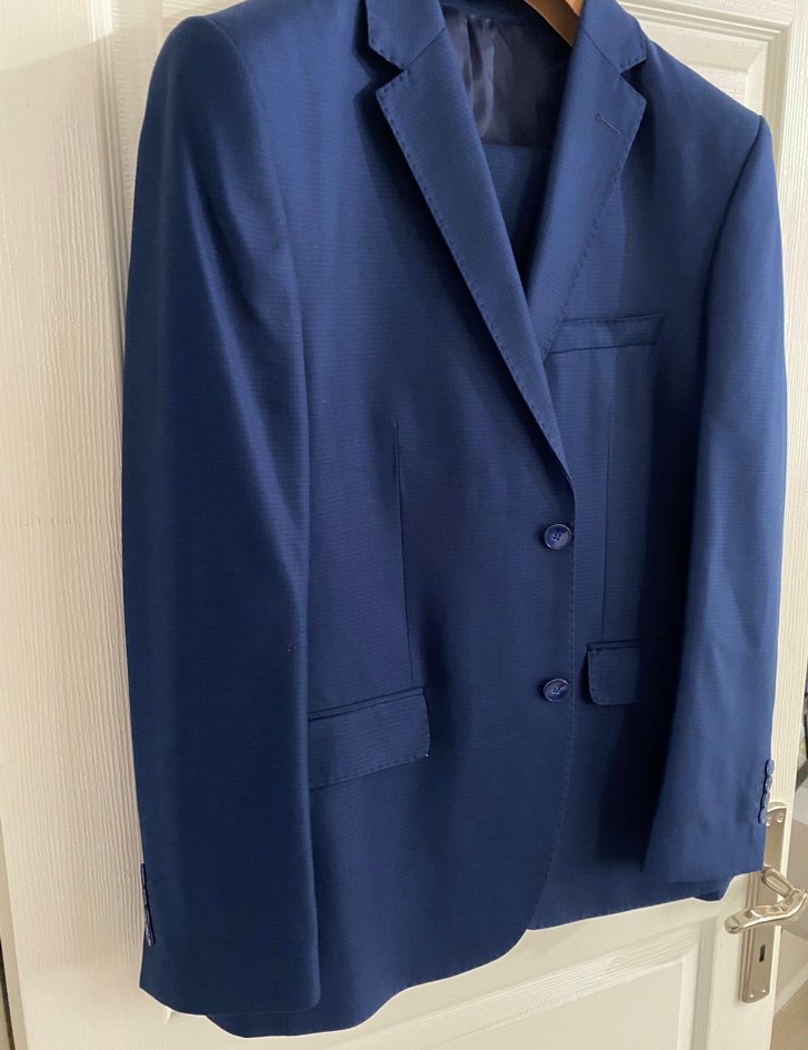 Lacivert renkli, regular fit erkek takım elbisesi. Düğmeli, uzun kollu, klasik modern tarzda, ofis için uygundur. ️52 beden 4 drop