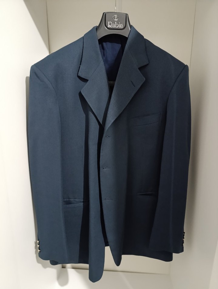 Lacivert erkek takım elbise ceketi ve yeleği.