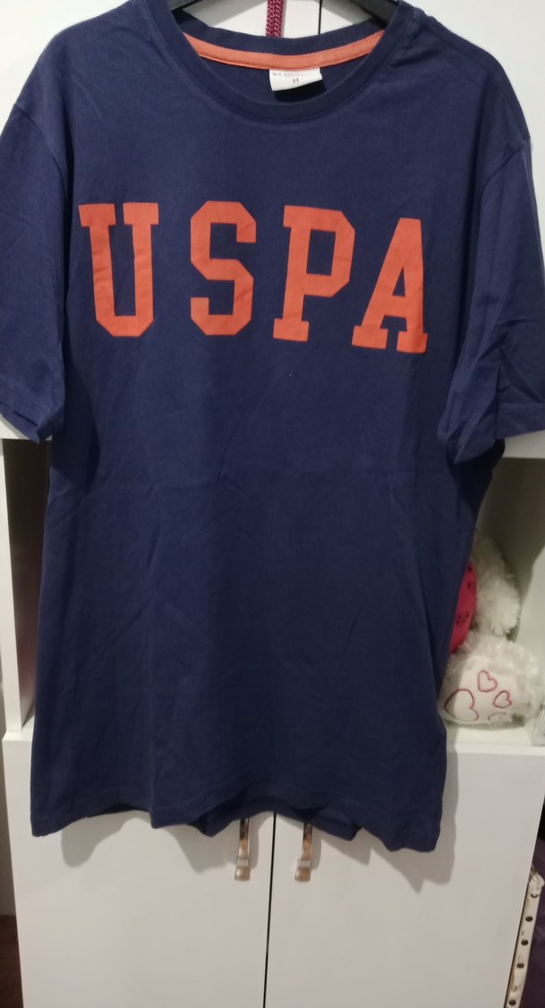 Lacivert renkli, kısa kollu, yuvarlak yakalı erkek tişörtü, bol kesim ve USPA baskısı ile sportif ve rahat bir görünüm sunar. ♂️