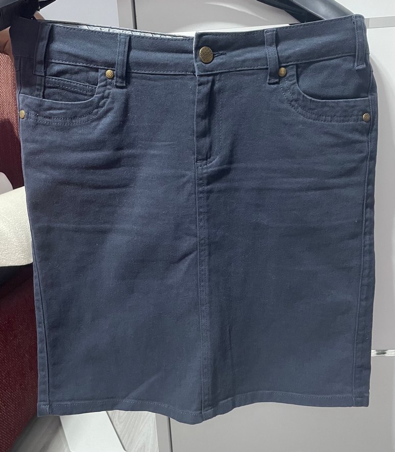 Lacivert renkte, normal midi boyda, regular fit kesime sahip kadın mini etek. Günlük sokak stili için rahat ve şık görünüme sahiptir. Uzunluk 48.5 cm Bel genişliği 42.5 cm