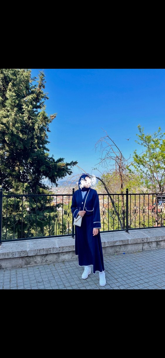 Lacivert uzun etek ve ceket takım mevsimliktir. Etek a kesimdir gömlek ceket birleşiktir.