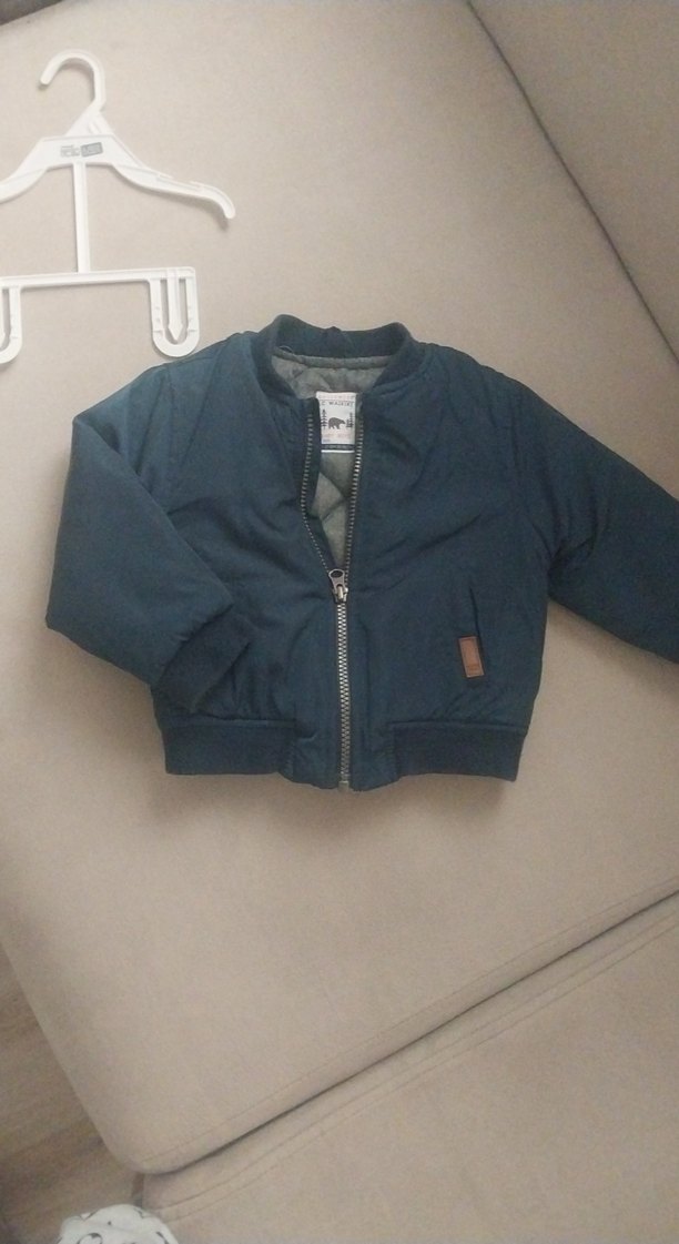 Fermuarlı ve yakalı, lacivert renkte, dar kesim erkek çocuk montu. Yumuşak ve sıcak kumaştan, sokak stili için uygun.