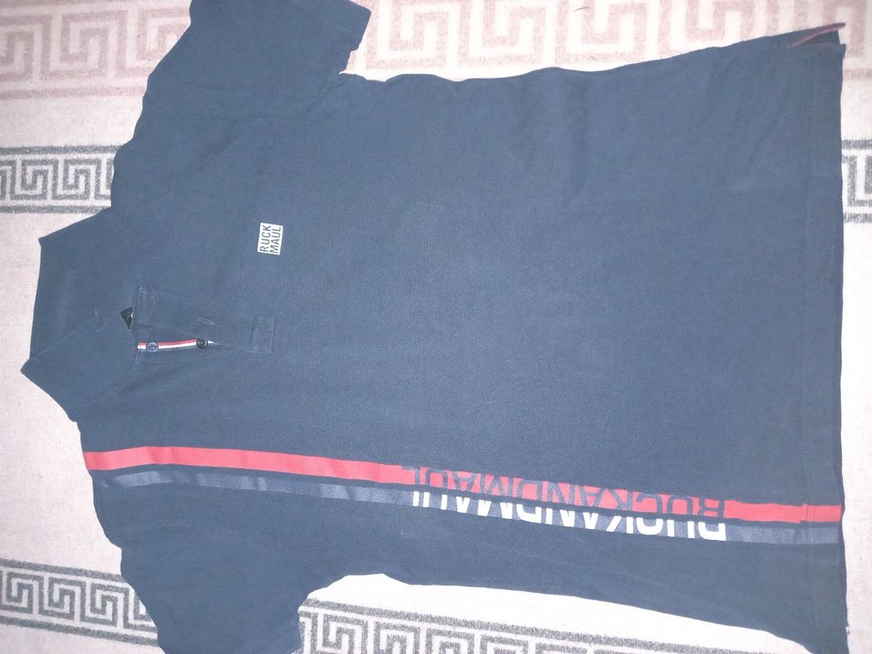 Lacivert, fermuarlı, baskılı, kısa kollu ve yakalı erkek polo tişört. Sentetik kumaştan, rahat ve şık günlük sokak stili için uygun.