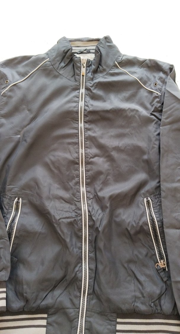 Lacivert renkli, fermuarlı ön ve cep detaylarına sahip, düz kesim erkek spor ceket. Notlu yaka ve uzun kollu, sentetik kumaştan üretilmiştir.